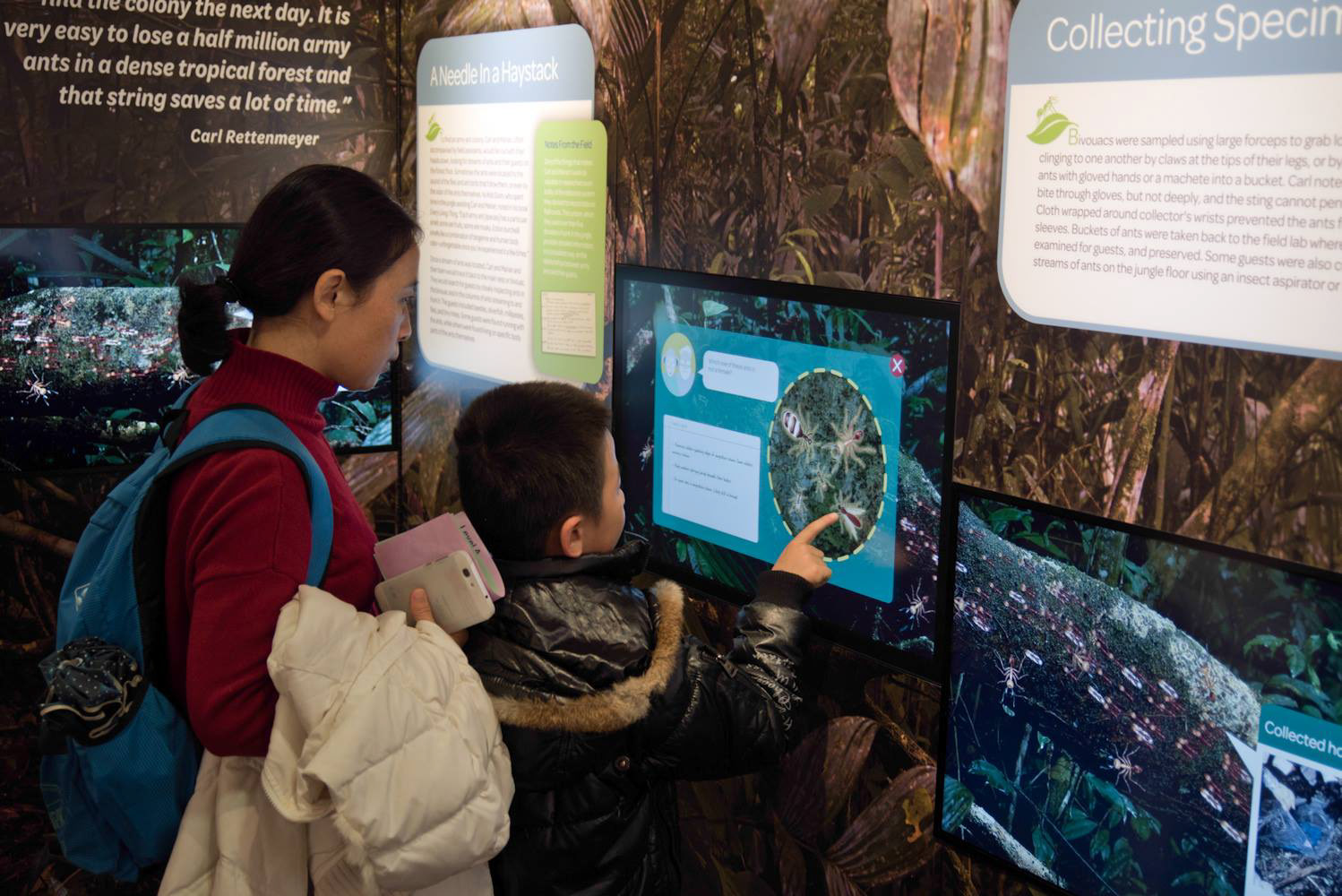 An interactive exhibit showcasing the lives of Army Ants, their guests, and the scientists who studied them.